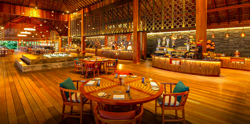 2. ห้องอาหาร CANNELI เป็นห้องอาหารหลักของ HURAWALHI MALDIVES RESORT เพราะให้บริการทั้งมื้อเช้าและค่ำ บางวันจะเปิดให้บริการอาหารกลางวัน ที่นั่งรับประทานมีทั้งภายใต้อาคารและพื้นที่ด้านนอกอาคารซึ่งบางครั้งถ้าโชคดีท่านอาจเห็นโลมาขณะรับประทานอาหารไปด้วย อาหารที่ให้บริการเป็นลักษณะ Buffet มีอาหารหลากหลายประเทศให้เลือกรับประทานและจะเปลี่ยนtheme ไปในๆทุกวัน เพื่อไม่ให้จำเจค่ะ