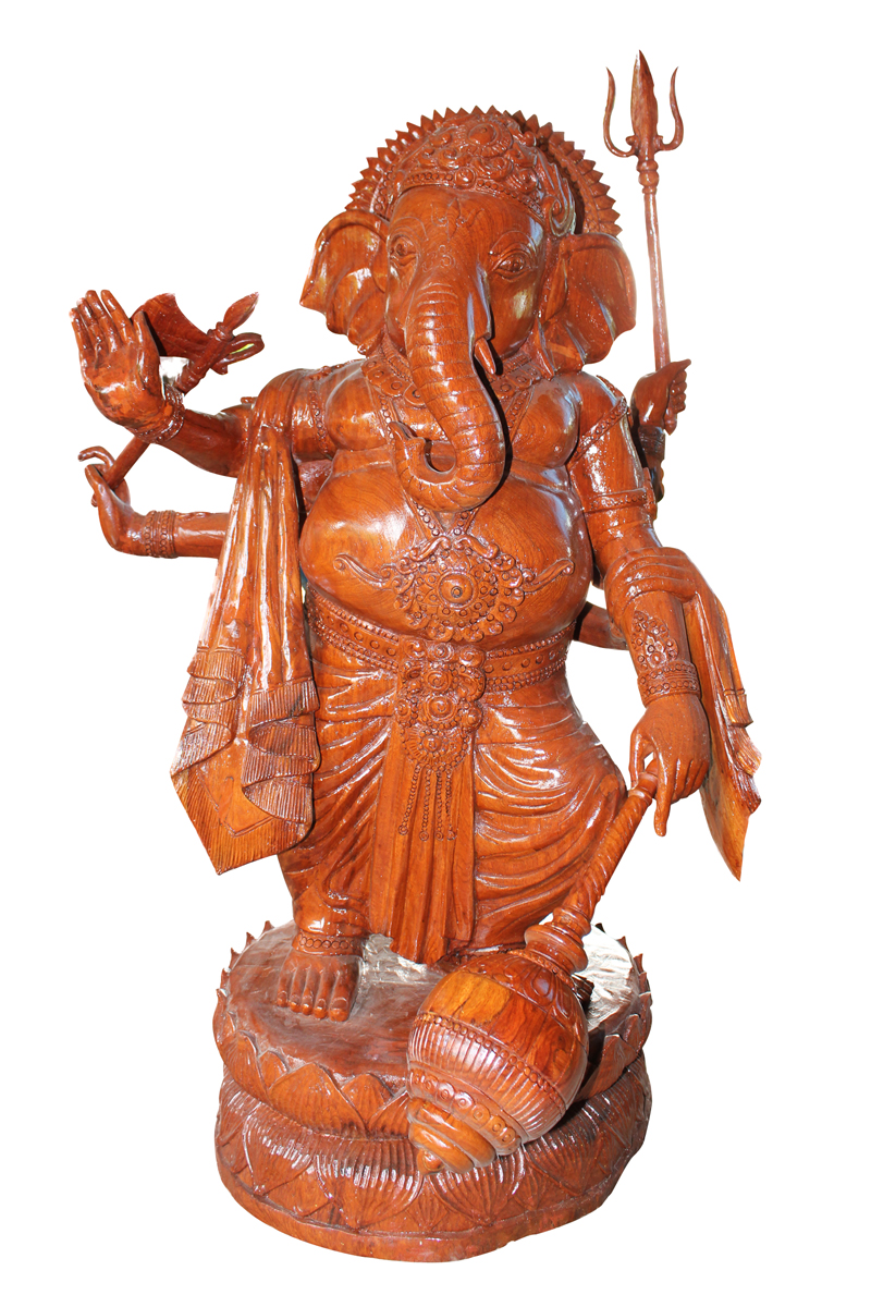พระพิฆเนศ ไม้แกะสลัก แกะจากไม้ประดู่ สูง 1 เมตร ฐาน 25 นิ้ว