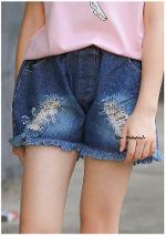 เด็กโต-กางเกงยีนส์ฟอกสีเข้มขาสั้น แต่งขาดๆเซอร์ๆ เอวยางยืด มีกระเป๋าหน้า งานสวยเก๋ (ไม่รวมเสื้อ)