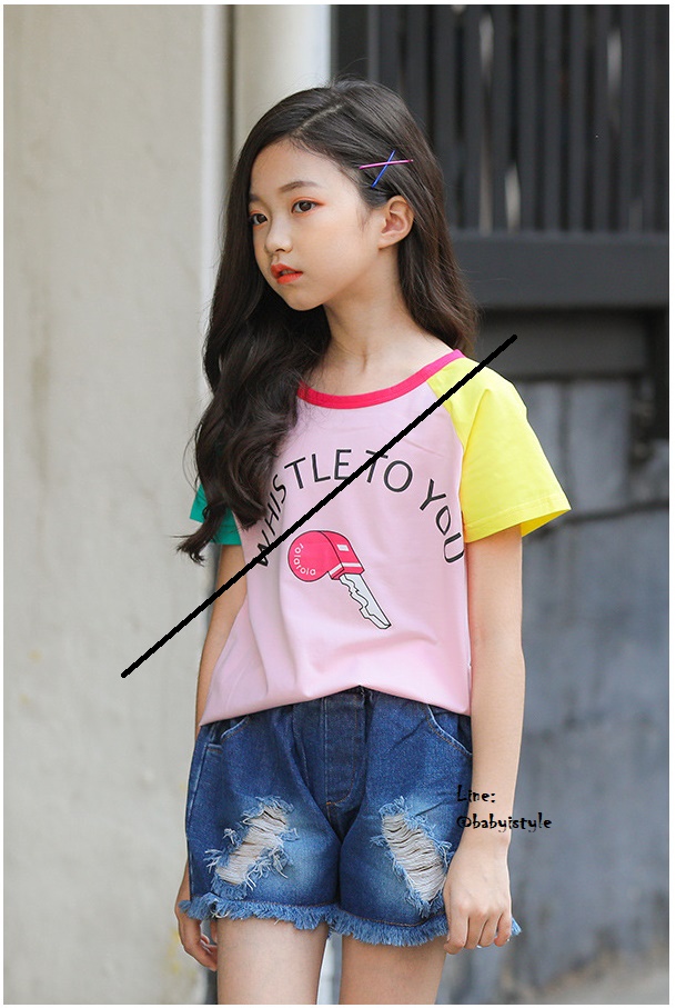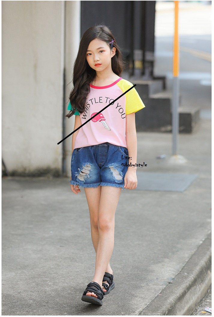 เด็กโต-กางเกงยีนส์ฟอกสีเข้มขาสั้น แต่งขาดๆเซอร์ๆ เอวยางยืด มีกระเป๋าหน้า งานสวยเก๋ (ไม่รวมเสื้อ) ไซส์ 140/150/160/170