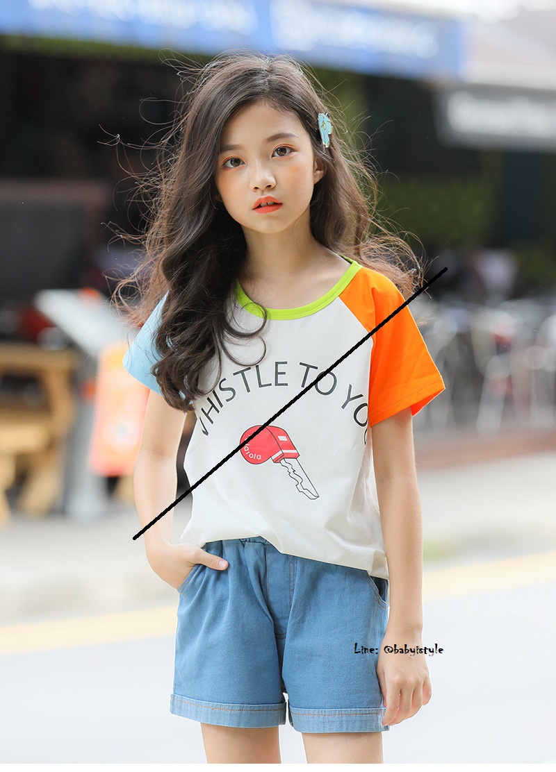 เด็กโต-กางเกงยีนส์ฟอกสีอ่อนขาสั้นพับเบิ้ล เอวยางยืด มีกระเป๋าหน้า-หลัง งานสวยเก๋ (ไม่รวมเสื้อ) ไซส์ 140/150/160/170