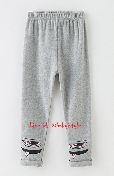 เด็กโต-เลกกิ้งขายาวสีเทา สกรีนรูปดวงตา เอวยางยืด ผ้ายืดหยุ่นได้ดี สวยเก๋น่ารัก