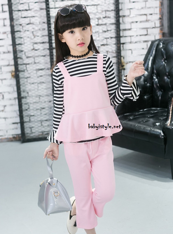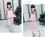 เด็กโต-ชุด3ชิ้นเสื้อริ้วสีขาวดำแขนยาวกระดิ่ง(ผ้ายืดหยุ่นได้)