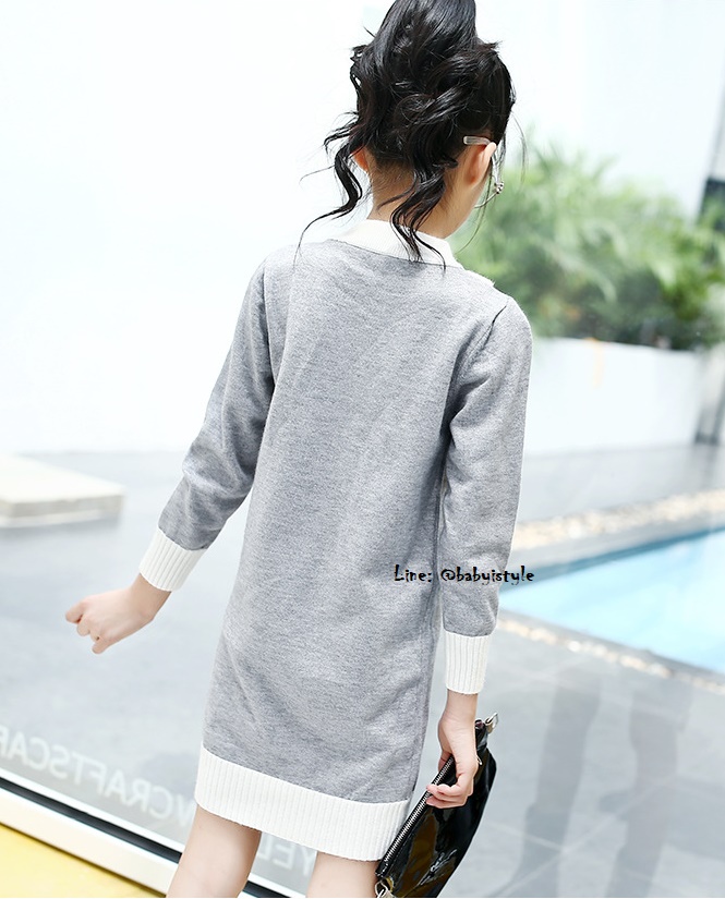 เด็กโต-เดรสแขนยาวไหมพรมทรงสอบสีเทา แต่งตัวV ผ้ายืดหยุ่นได้ ผ้าดีงานสวย