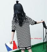 เด็กโต-เดรสแขนยาวจั๊มพ์ลายริ้วสีดำ ชายสกรีน CCQUEEN STYLE ผ่าข้าง ผ้านุ่ม งานสวยเก๋ค่ะ ราคาปกติ 395 พิเศษ 190 บาท*ไม่รวมค่าส่ง