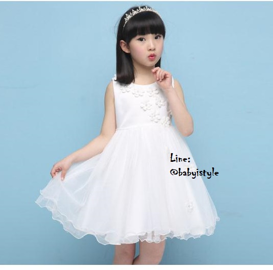เด็กโต-เดรสออกงานแขนกุดสีขาว มีริบบิ้นผูก มีซิปหลัง ราคา 590 พิเศษ 410 บาท*ไม่รวมค่าส่ง