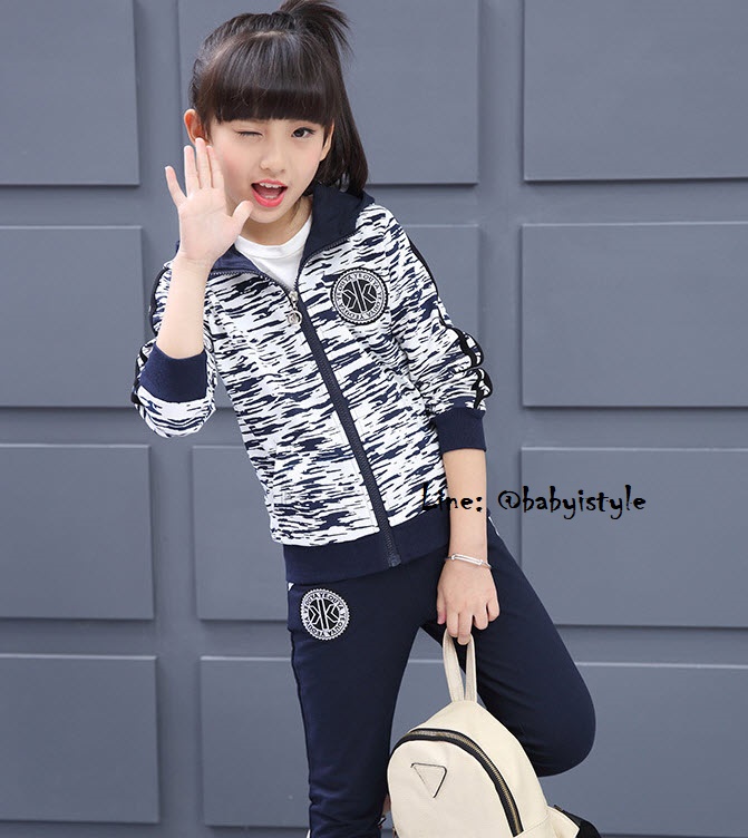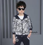 เด็กโต-ชุด2ชิ้นเสื้อแขนยาวจั๊มพ์สีขาวลายพรางสีกรม ซิปหน้า มีกระเป๋าหน้า(ไม่มีเสื้อตัวใน)