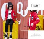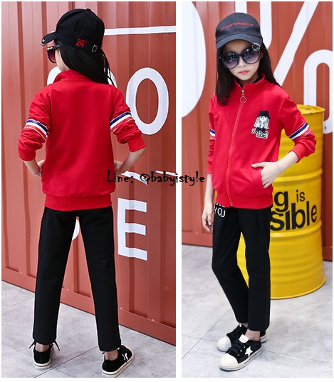 เด็กโต-ชุด2ชิ้นเสื้อแจ็คเก็ตคอตั้งแขนยาวจั๊มพ์สีแดงปักสาวFashionable มีกระเป๋าข้าง (ไม่มีเสื้อตัวใน)