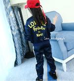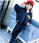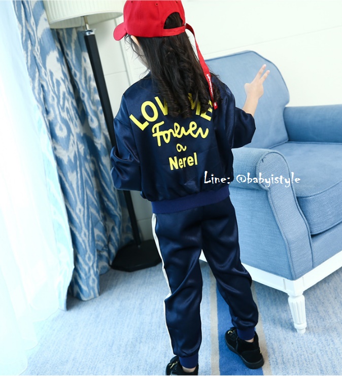 เด็กโต-ชุด2ชิ้นเสื้อแจ็คเก็ตแขนยาวจั๊มพ์สีกรมท่าซิปหน้า มีกระเป๋าข้างซิป มีซับใน (ไม่มีเสื้อตัวใน)หลังสกรีนLOVEME