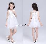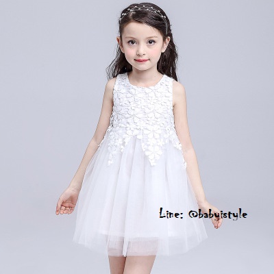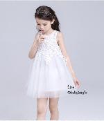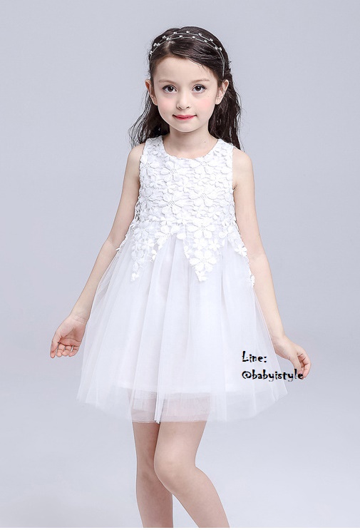 เด็กโต-เดรสแขนกุดสีขาว ช่วงเสื้อติดลูกไม้สีขาว กระโปรงผ่าตาข่าย มีซับในและซิปหลัง งานสวยเริ่ดไซส์ 140/150/160