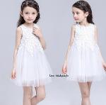 *Salesเด็กโต-เดรสแขนกุดสีขาวติดลูกไม้สีขาวกระโปรงผ่าตาข่าย มีซับใน ซิปหลัง ไซส์ 150/160รหัสKKK853