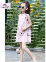 *Sales เด็กโต-เดรสแขนกุดสีชมพูทรงเอ มีกระเป๋าหน้าแมวเหมียว ติดกระดุมหลังไซส์ 140/160 รหัส KKK875A