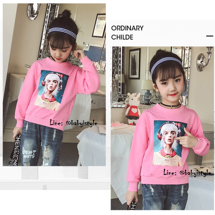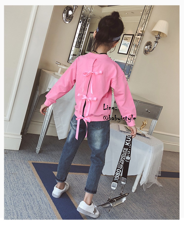 เด็กโต-เสื้อแขนยาวจั๊มพ์สีชมพูสกรีนสาวหวาน ด้านหลังผูกริบบิ้นเก๋ไก๋มาก