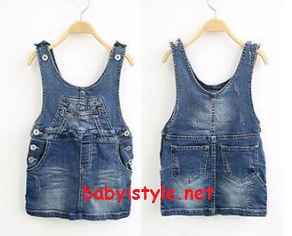 ชุดเอี๊ยมกระโปรงยีนส์ มีกระเป๋าหน้าเล็ก ติดกระดุมข้าง