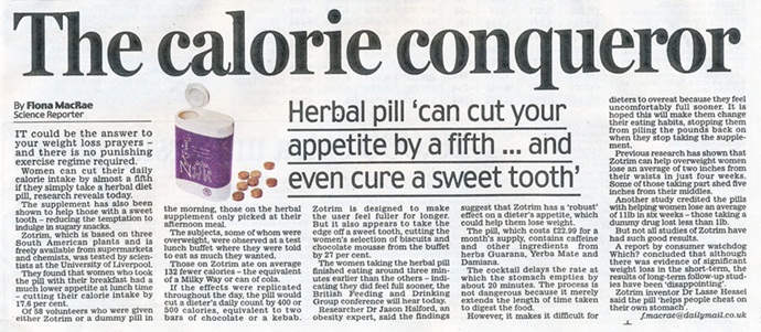 Zotrim is a herbal slimming tablet, designed to reduce the amount of food you eat by making you feel fuller for longer.It works by suppressing your appetite making you eat less, and reducing your cravings for snacks in between meals.