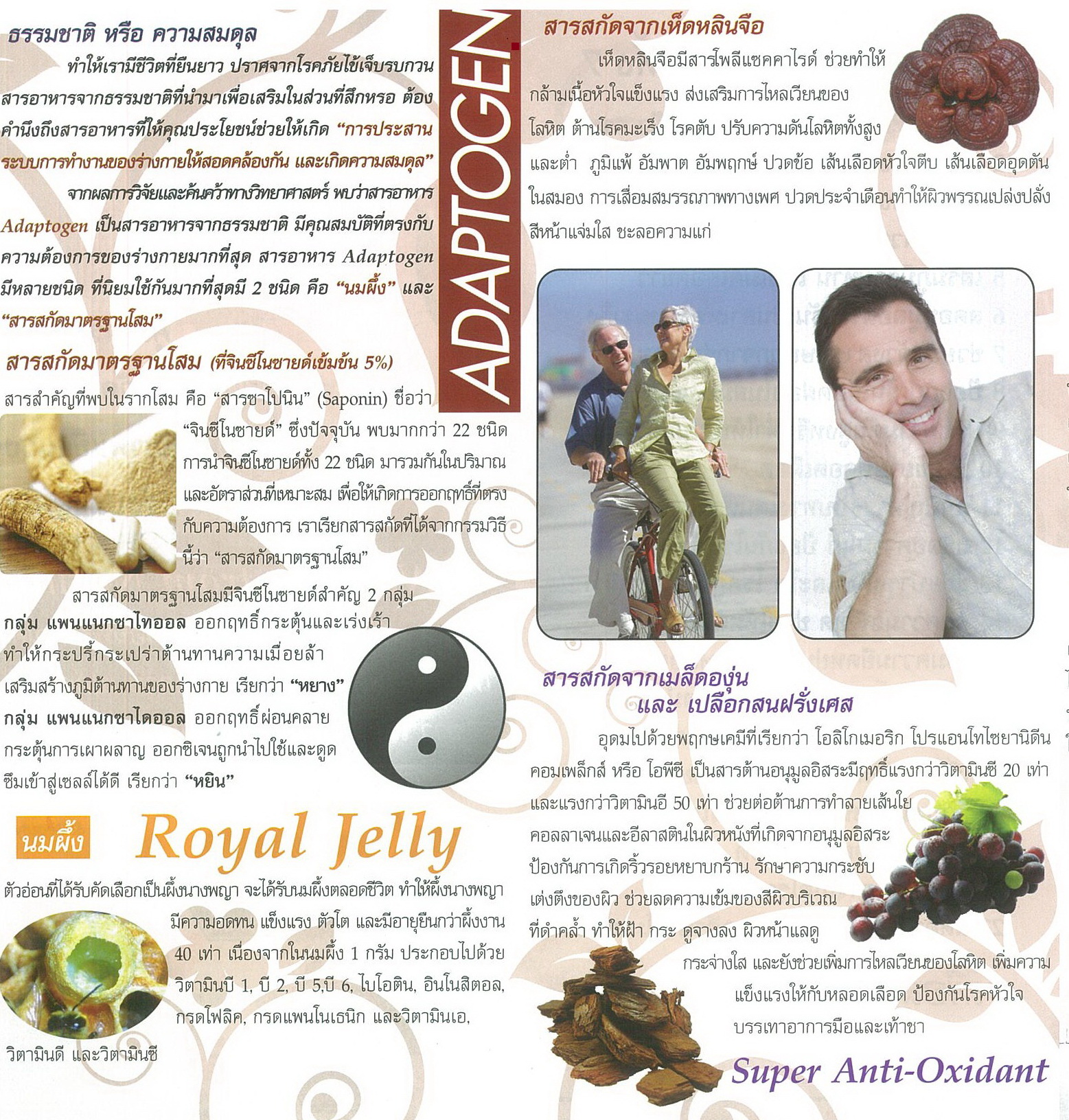 สารสกัดมาตรฐานโสมที่จินซีโนซายด์เข้มข้น 5 % นมผึ้ง, สารสกัดจากเห็ดหลินจือ,