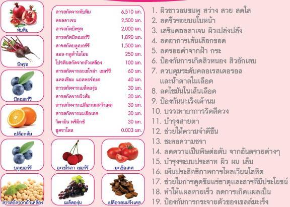 | Grape Seed Extract (สารสกัดจากเมล็ดองุ่น) | 30.00 |