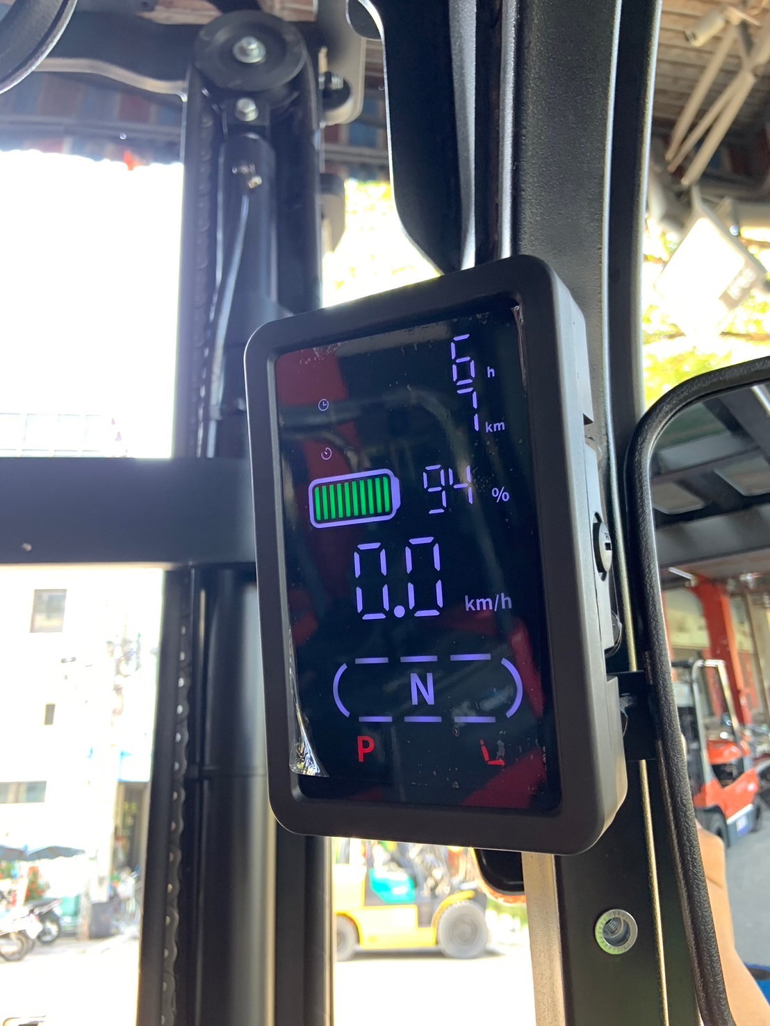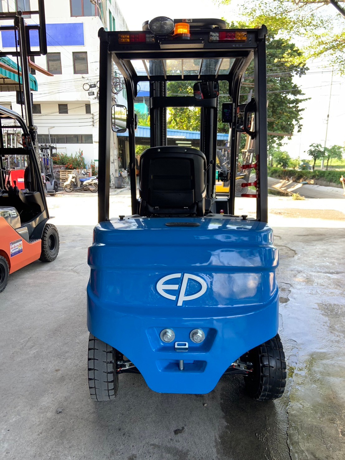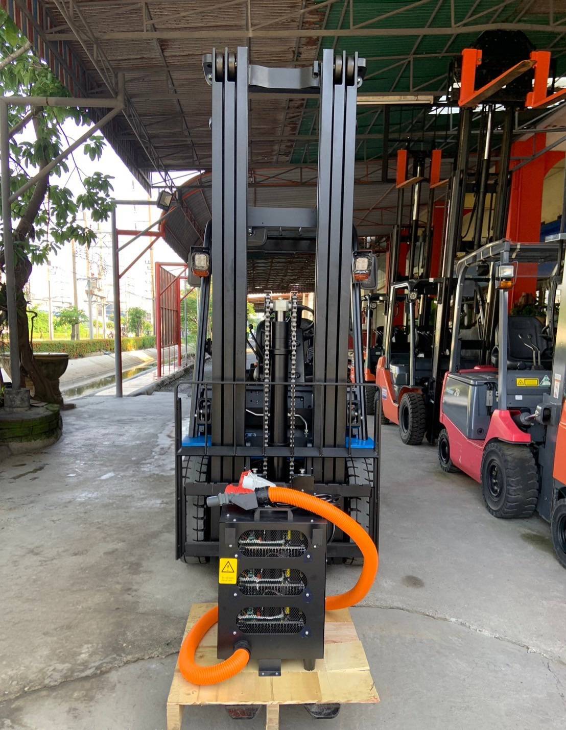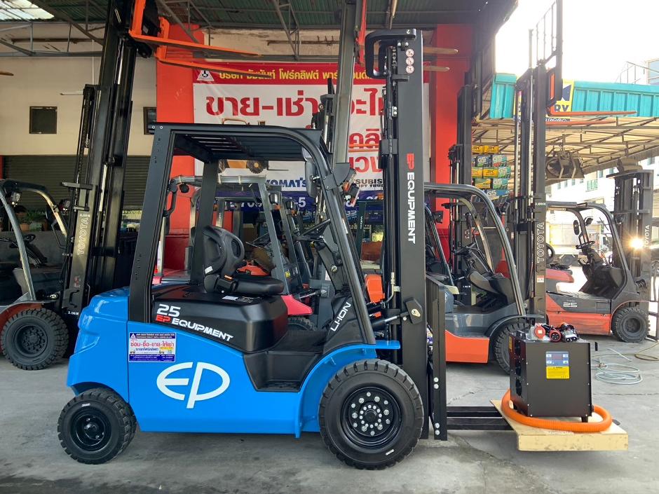 รถไฟฟ้านั่งขับ ยี่ห้อ EP เสาสูง : 6000 MM สามท่อน แบตเตอรี่ติดรถ : 80V 410Ah./ Lithium-ion Special size