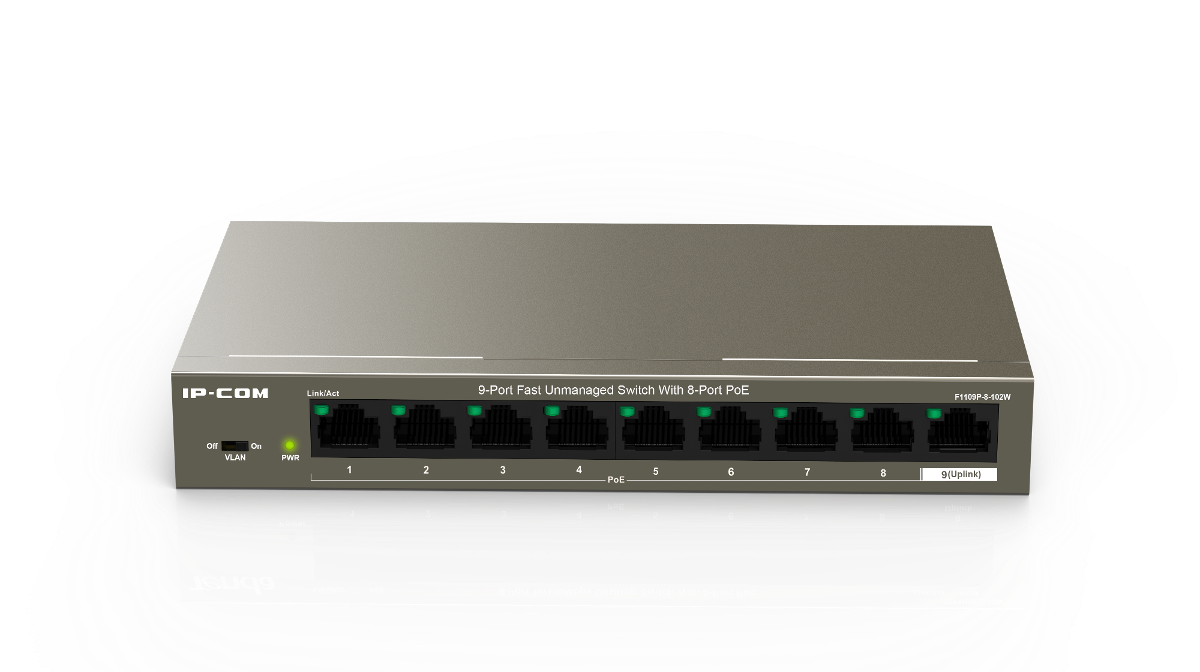 SWITCH (สวิตซ์) IP-COM F1109P-8-102W 9-Port Fast Unmanaged Switch With 8-Port PoE 10/100M
