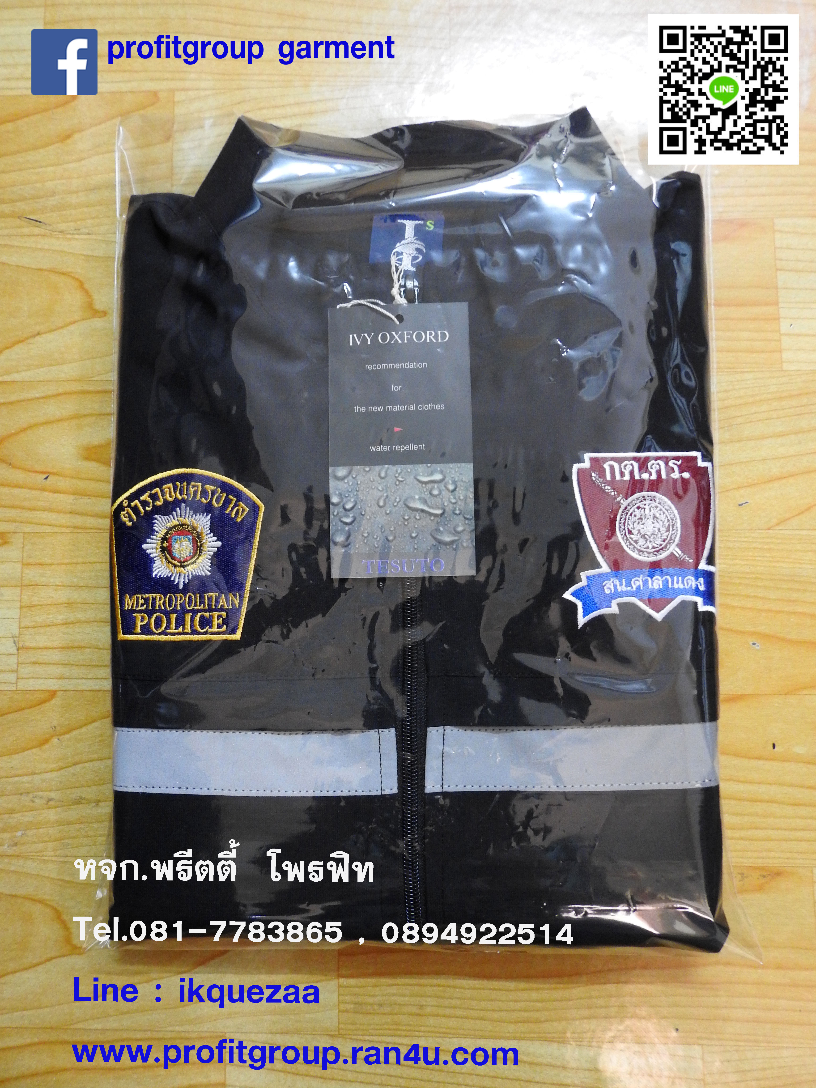 ผมส่งตัวอย่างเสื้อกั๊กตำรวจนครบาล พร้อมกับตัวอย่างผ้าสะท้อนน้ำ 3 สี สีเทา,ดำ,ทรายทอง ไปให้ดูนะครับ