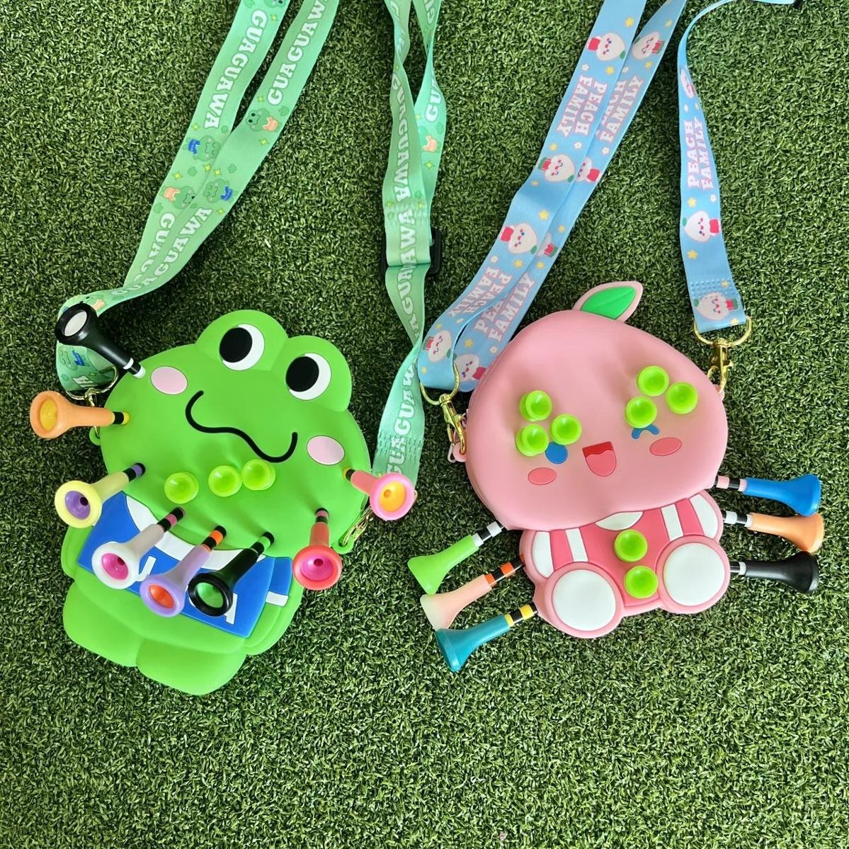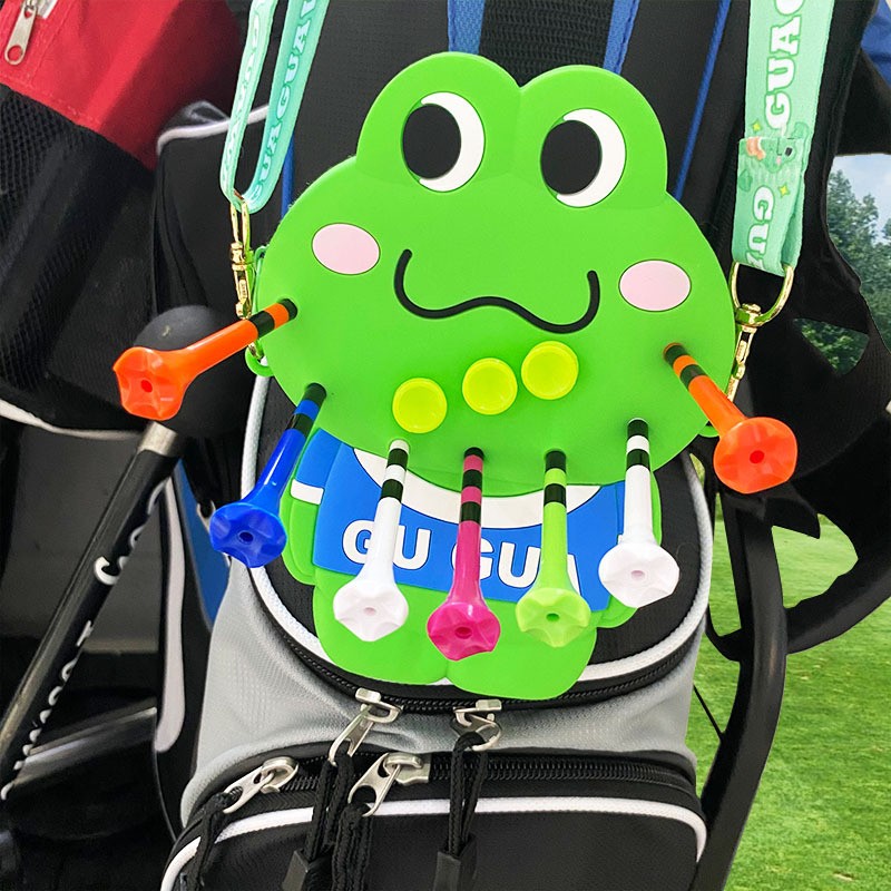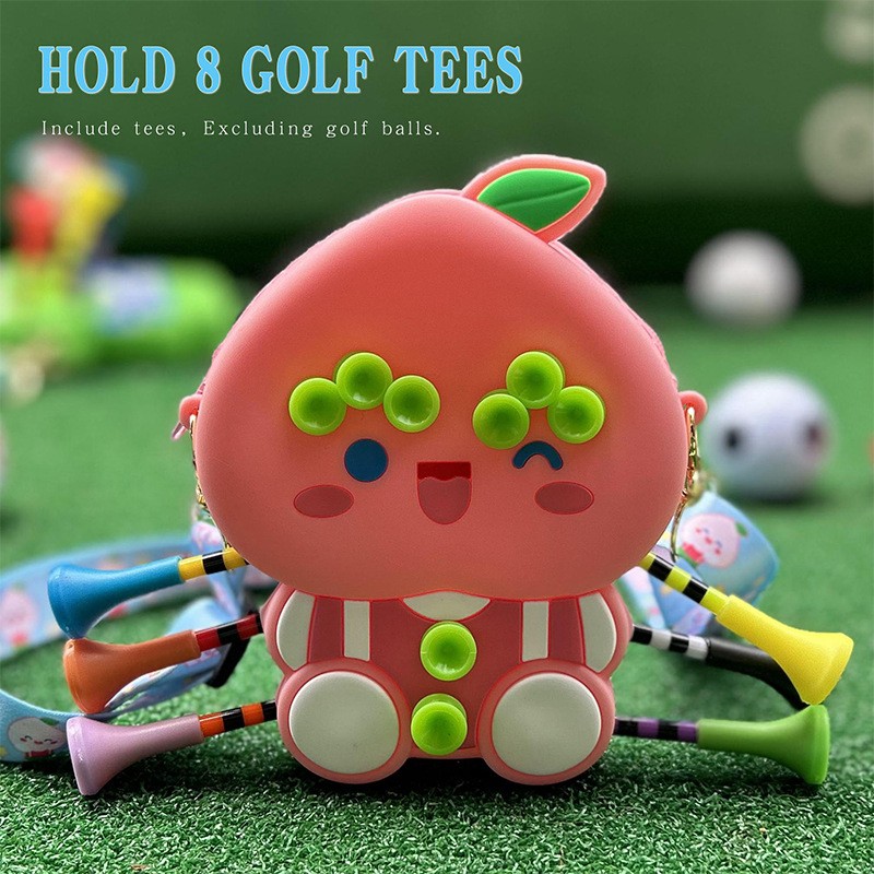 กระเป๋าใส่ลูกกอล์ฟและที ลายการ์ตูน พร้อมแท่งที (tee) มีช่องเสียบที ถุงเก็บลูกกอล์ฟและที Product parameters Product Name: Golf Cartoon Peach Ball Peg Holder Bag (includes a 14-ball tee) Material: Silicone