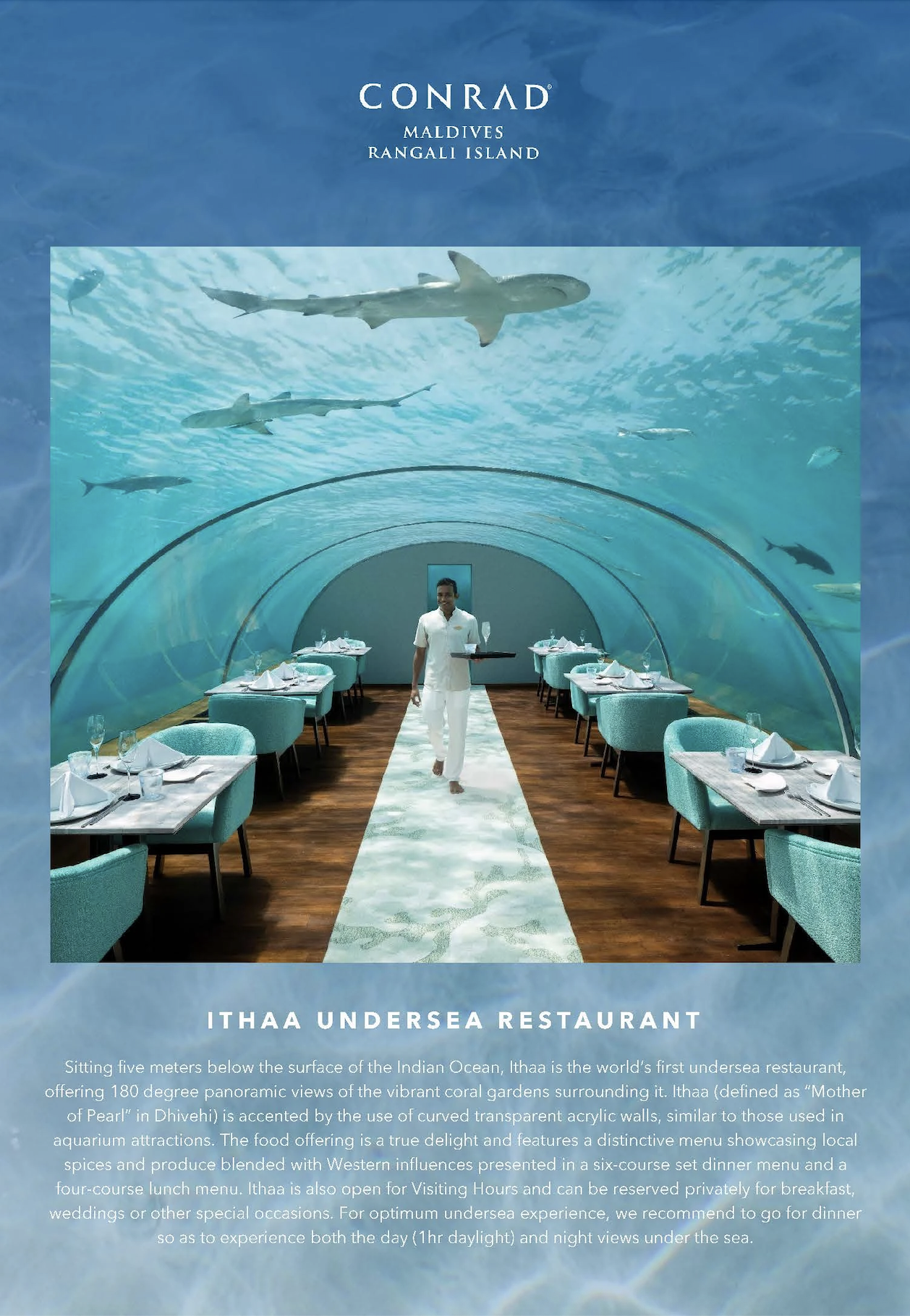 CONRAD RANGALI RESORT & SPA MALDIVES รีสอร์ทระดับ 5 ดาวในประเทศมัลดีฟส์ที่มีห้องอาหารใต้น้ำเป็นที่แรกของมัลดีฟส์