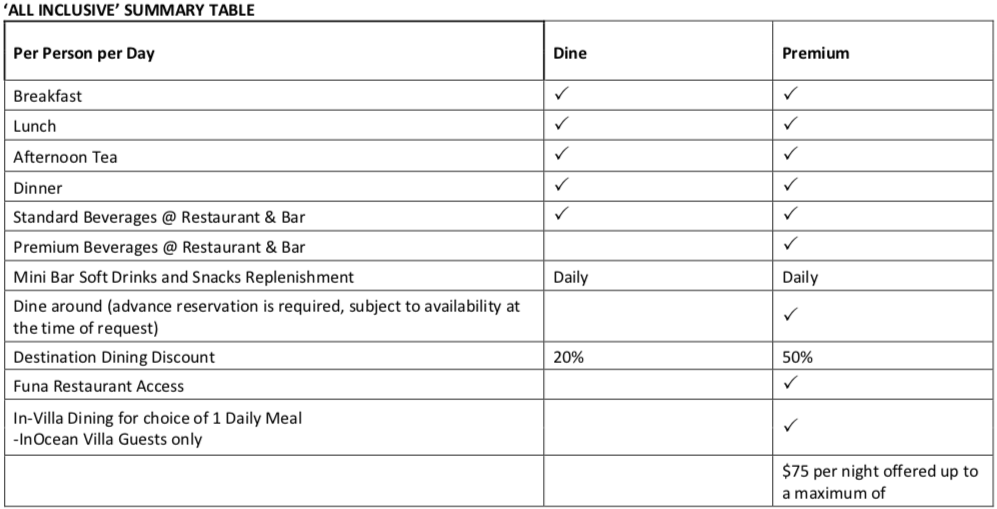 - Free upgrade Meal plan จาก All Inclusive Dine เป็น All Inclusive Premium