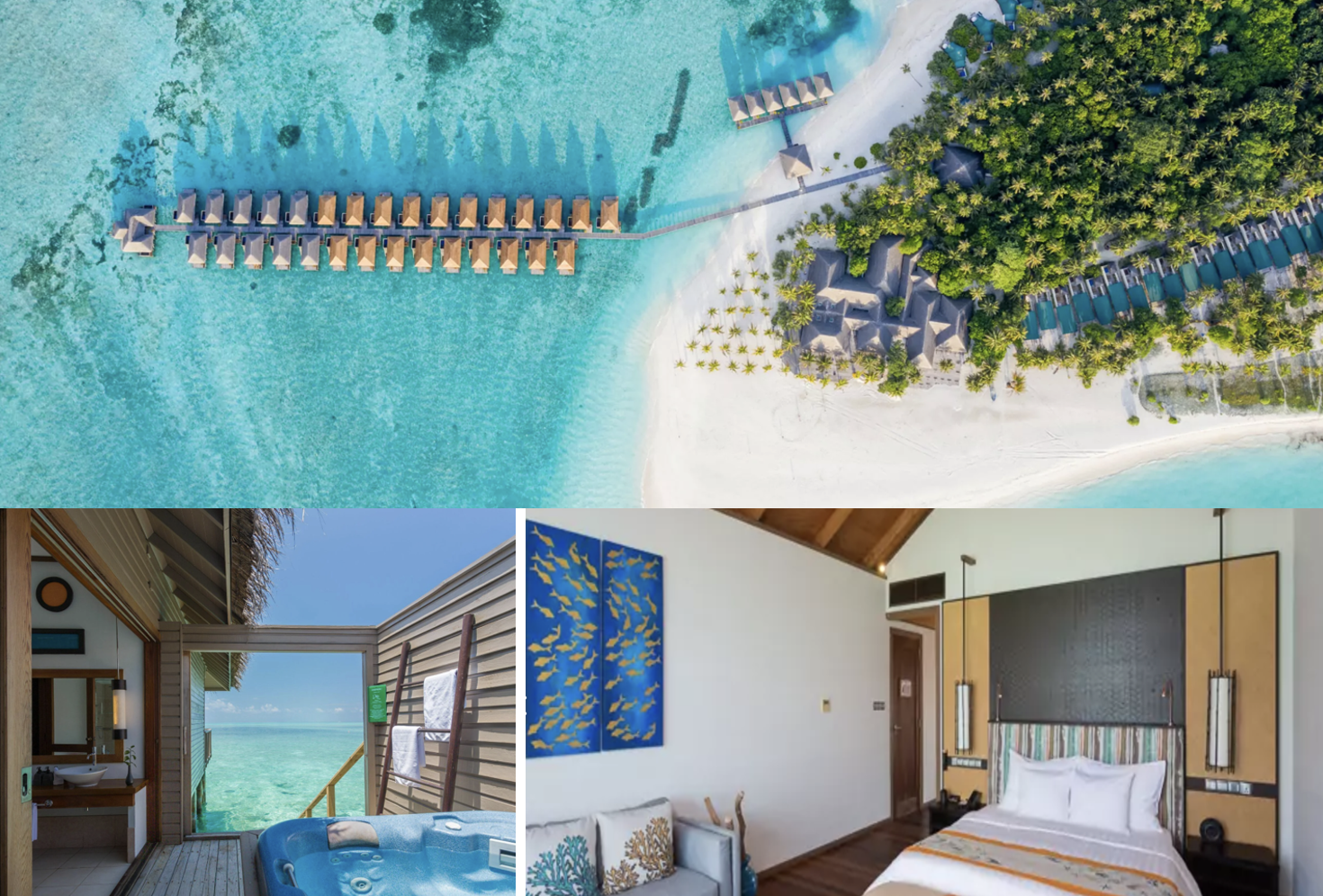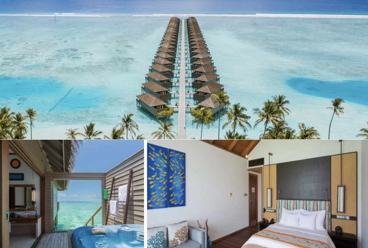 รีสอร์ทระดับ 4 ดาวที่มีขนาดใหญ่ MEERU ISLAND RESORT MALDIVES มี ห้องหลายประเภททั้งบนหาดและห้องกลางน้ำที่อนุญาตให้เด็กพักห้องกลางน้ำได้ในโซนที่ระบุ มีห้องอาหารหลากหลายห้อง ให้บริการแบบ All Inclusive Plan ซึ่งคุ้มค่ามาก รวมอาหารให้ 3 มื้อต่อวัน , เครื่องดื่มแบบมีและไม่มีแอลกอฮอลล์ที่บาร์ , Mini Bar, กิจกรรม Sunset Cruise และ Snorkeling Trip อีกด้วยค่ะ จึงเป็นรีสอร์ทที่เป็นที่นิยมสำหรับนักเดินทางจากทั่วโลก