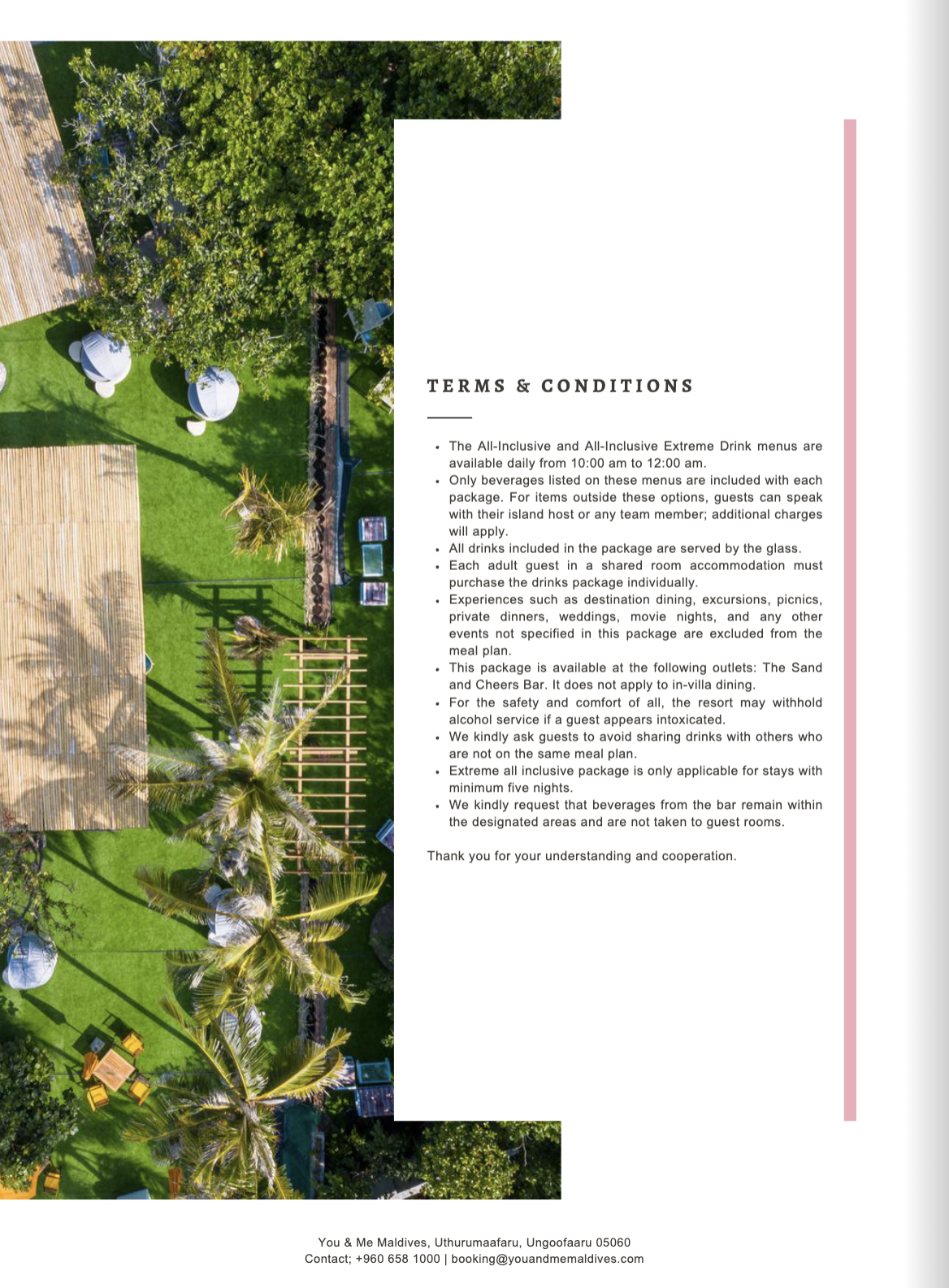 You & Me by Cocoonรีสอร์ทระดับ 5 ดาว ที่ตั้งอยู่ใน Raa Atoll ซึ่งมีจุดเด่นที่ห้องอาหารใต้น้ำ H2O ไว้คอยให้บริการผู้ที่เข้าพัก ห้องพักส่วนใหญ่เป็นห้องแบบกลางน้ำ ตกแต่งแนวธรรมชาติเพื่อให้เข้ากับบรรยากาศอันสวยงามรอบๆรีสอร์ทที่ You & Me by Cocoon จะเป็นรีสอร์ทที่ให้บริการเฉพาะผู้ใหญ่ จึงเหมาะกับคู่รักหรือคู่ Honeymooner ที่ต้องการไปพัก ผ่อนในประเทศมัลดีฟส์