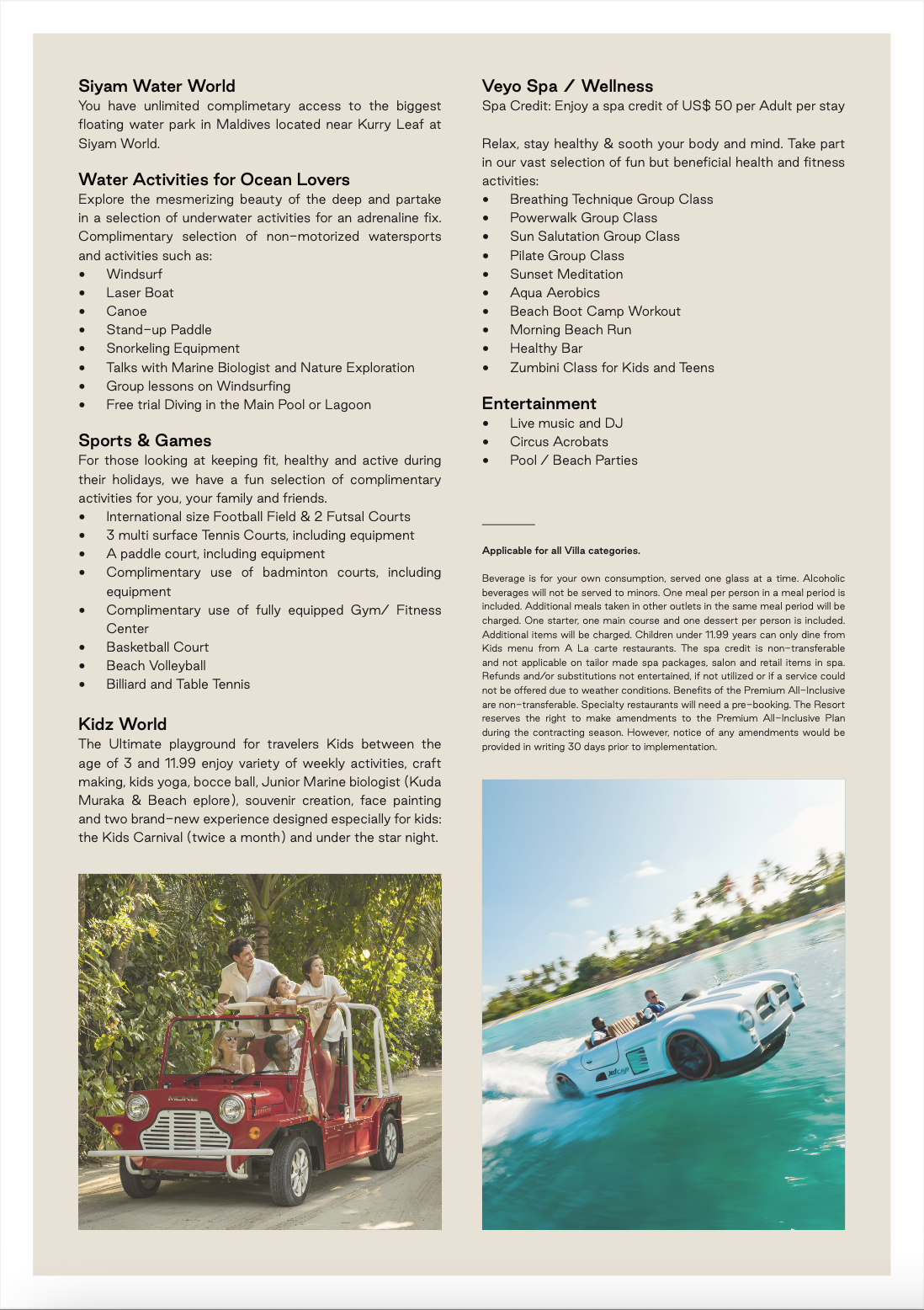 - The Resort reserves the right to make amendments to the Premium All-Inclusive Plan during the contracting season.