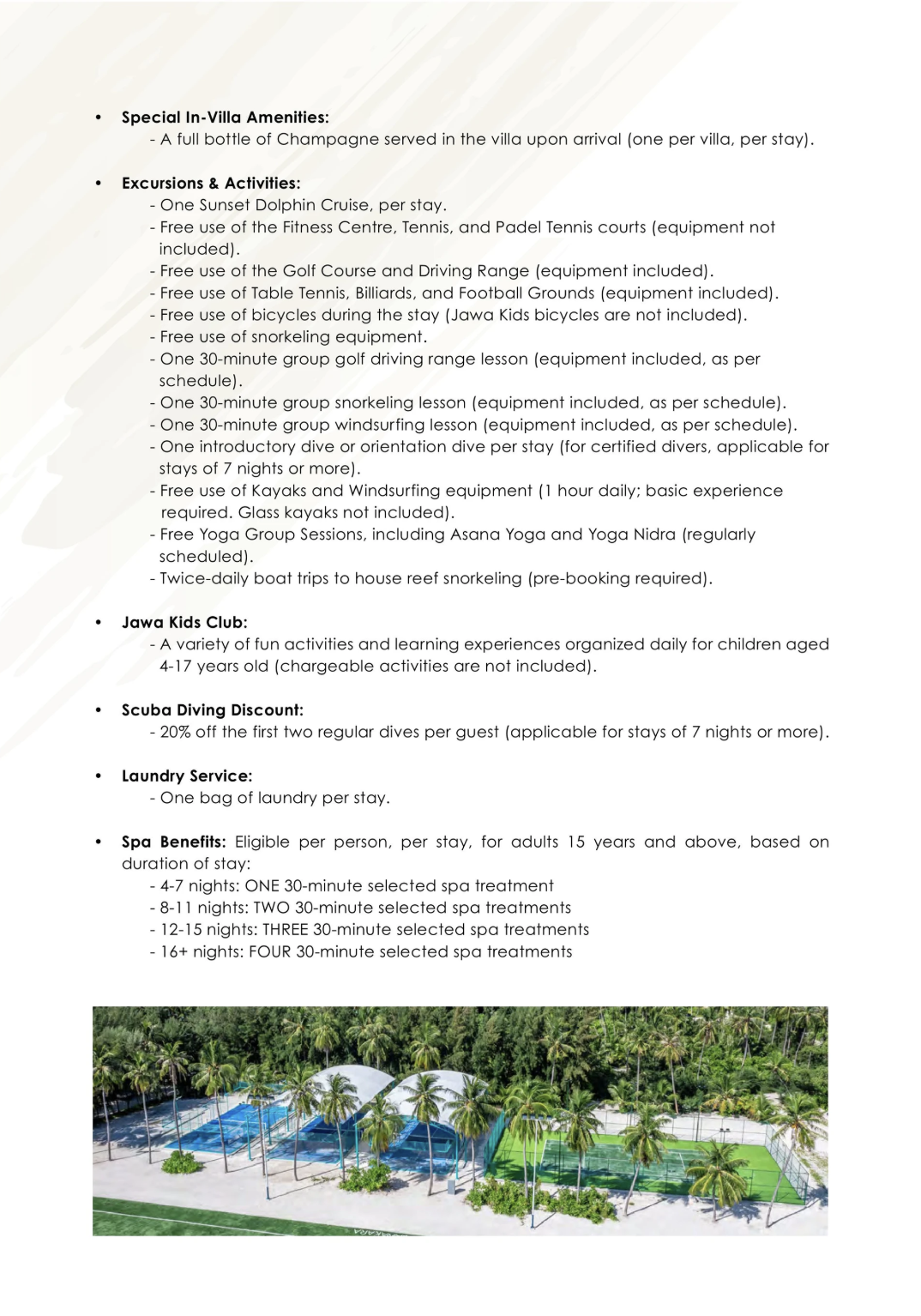 ** การให้บริการขึ้นอยู่กับตารางเวลา, ตารางกิจกรรมและสถานที่ตามกำหนดของรีสอร์ทซึ่งอาจมีการเปลี่ยนแปลงโดยไม่ได้แจ้งให้ทราบล่วงหน้า