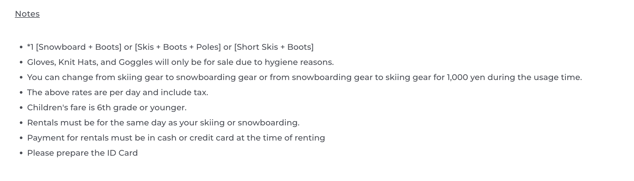 *เด็กอายุ 5 ปีขึ้นไปสามารถการเรียนสกีและเด็กอายุ 7 ปีขึ้นไปสามารถเรียนสโนว์บอร์ด*