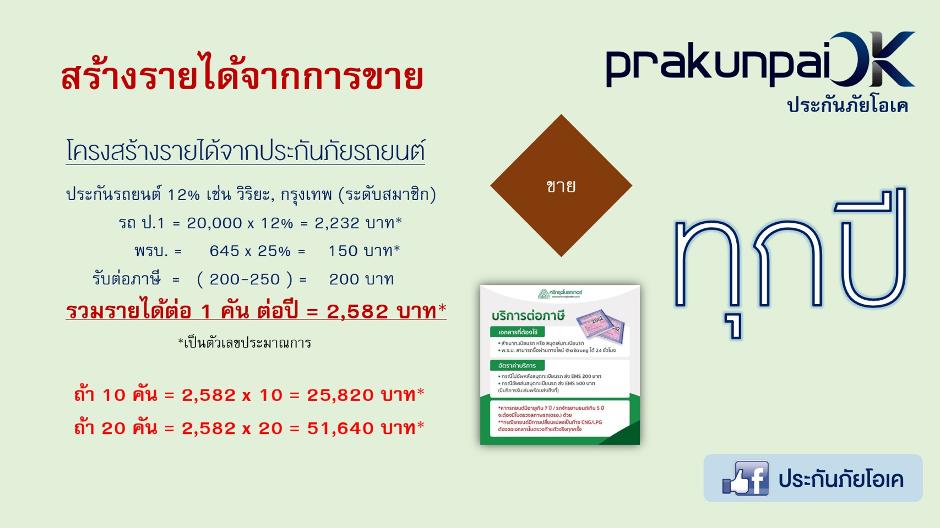 2 . ชวนสมัครสมาชิก ให้เจ้าของรถเอาส่วนลดไปทั้งหมดเอง เราได้ค่าแนะนำ 1% ตลอดไป (และจะได้ค่าตำแหน่งอีก 3-7% Cash back กรณีที่มีบัตรนายหน้า) รายได้ตลอดชีพ