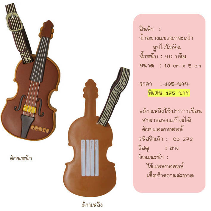 สนใจ ป้ายแขวนกระเป๋า รูปไวโอลิน ทำจากยาง ค่า ..ต้องทำยังงัยบ้างค่า