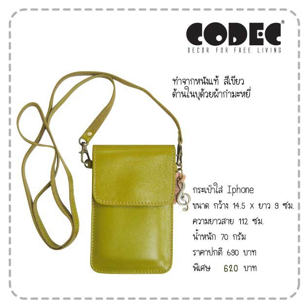 กระเป๋าหนังใส่ Iphone แบบสะพายข้าง สีเขียว