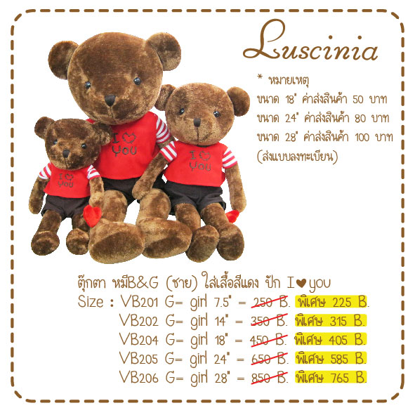 ตุ๊กตาหมี B & G ใส่เสื้อแดงกางเกงน้ำตาล มีหลายขนาดให้เลือก