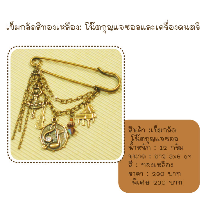 เข็มกลัดห้อยตัวโน๊ต สีทองเหลือง
