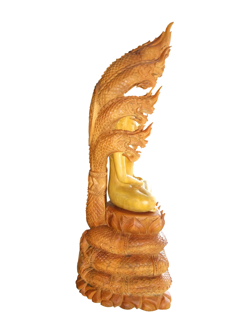 พระพุทธรูปปางนาคปรก แกะสลักจากไม้มงคล ไม้ขนุน สูง 49 นิ้ว รวมฐาน หน้าตัก 15 นิ้ว