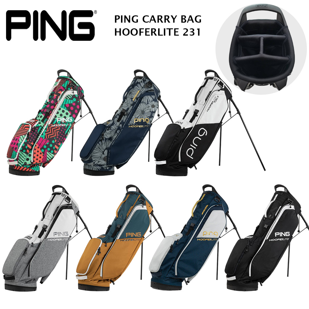 PING CARRY BAG HOOFERLITE 231 PING CARRY BAG ถุงกอล์ฟ HOOFERLITE 231 ออกแบบให้มีน้ำหนักเบาเพียง 2.25 กิโลกรัม แต่ทำจากวัสดุที่คงทนแข็งแรง ใช้งานได้ยาวนาน ให้ความสะดวกสบายและคล่องตัวในการออกรอบเล่นกอล์ฟ มีช่อง 4 ช่องสำหรับใส่ไม้กอล์ฟในถุง HOOFERLITE TEC