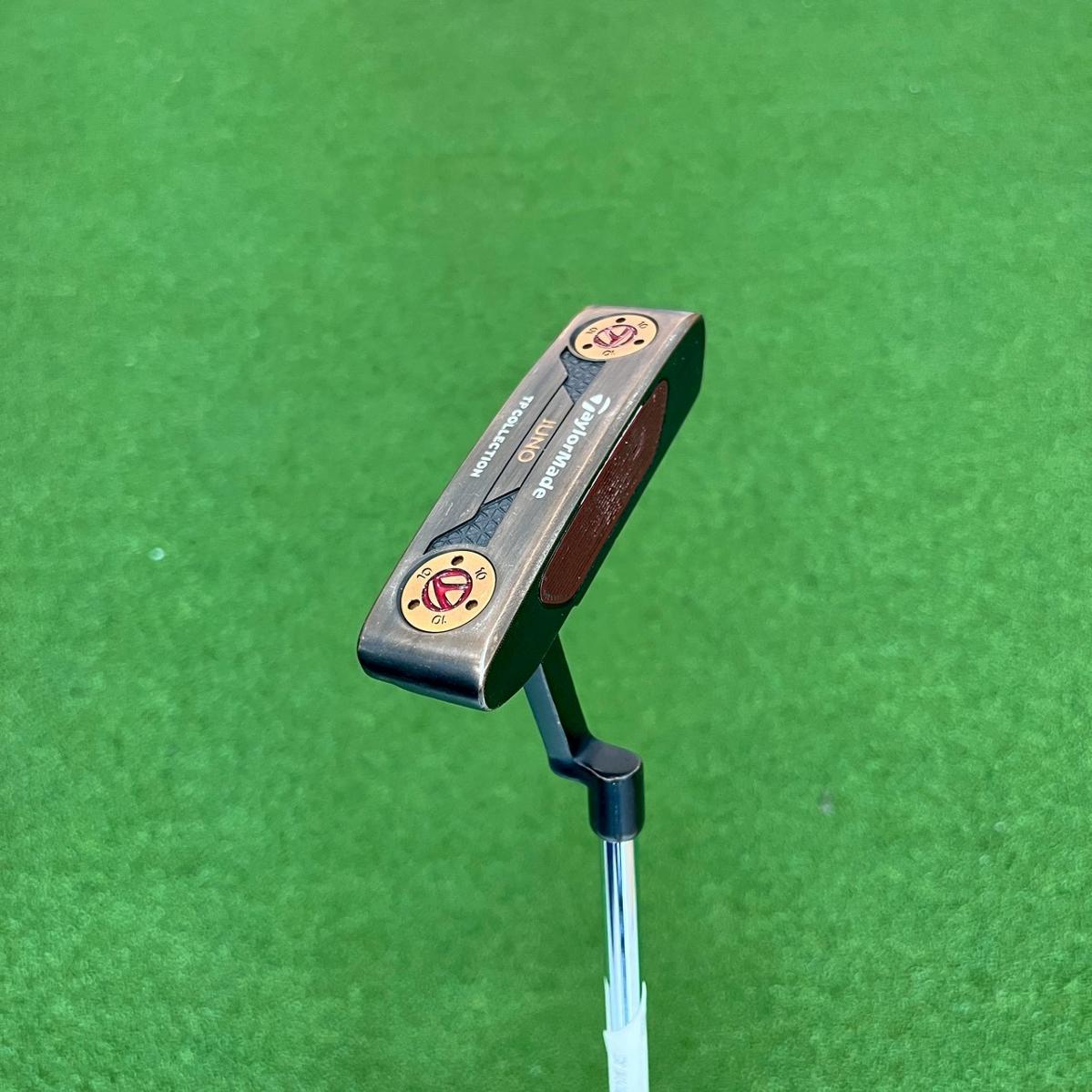 PUTTER TAYLORMADE TP COPER Collection JUNO 303 ความยาวก้าน 34 นิ้ว TP Patina Collection Collection JUNO Single Bend Shaft ช่วยให้สามารถมองเห็นใบหน้า ได้อย่างไร้สิ่งกีดขวางจากที่อยู่