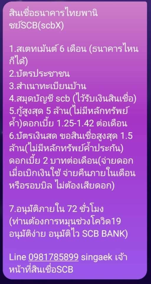 Line 0981785899 singaek ฝ่ายสินเชื่อSCB