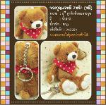 พวงกุญแจหมี ใส่ผ้าพันคองสีแดงลายจุด