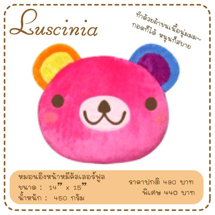หมอนอิงหน้าตุ๊กตาหมี คัลเลอร์ฟูล