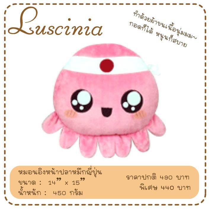 หมอนอิงหน้าตุ๊กตาปลาหมึกญี่ปุ่น