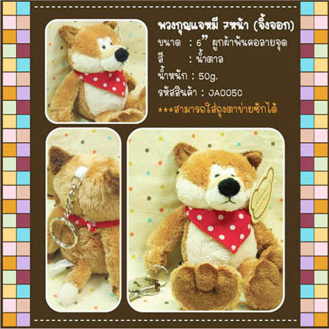 พวงกุญแจ สุุนัข ใส่ผ้าพันคอสีแดง ลายจุด 7 หน้า ขนาด 6 นิ้ว