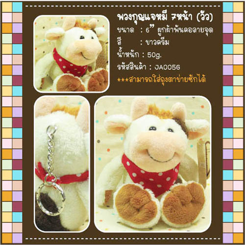 พวงกุญแจ วัว ใส่ผ้าพันคอสีแดง ลายจุด 7 หน้า ขนาด 6 นิ้ว