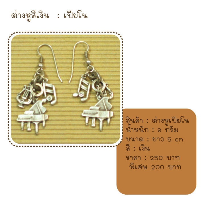 ต่างหู เปียโน สีเงิน