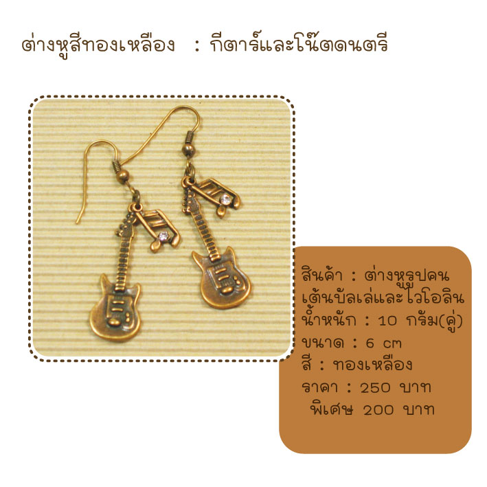 ต่างหูตุ้งติ้งกีตาร์ สีทองเหลือง