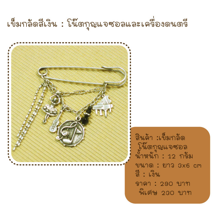 เข็มกลัดห้อยตัวโน๊ต สีเงิน
