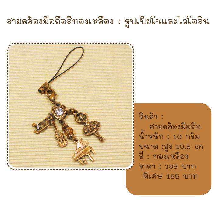 ที่ห้อยมือถือ รูปเปียโนและไวโอลิน สีทองเหลือง